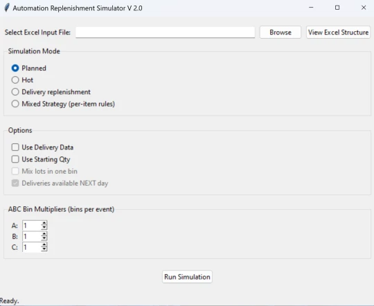 В Логистична академия разработихме собствен симулатор, който анализира данните и изготвя симулация, при която се разглеждат различни варианти за зареждане и провеждане на различни политики на база АВС анализ и прилагане на различни политики.